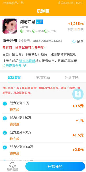 下载应用 玩游赚 分类: MOD社区中心 大小: 2.76 MB 系统: 安卓 发布: 2020-03-14 10:05:43 浏览: 作者: 标签: APP截图 应用介绍 玩游赚是一个以玩手机游戏就能赚零花钱的app,首次1元就能提现,后续5元起提现,超低提现门槛。玩的越多玩的越久,等级越高就赚的越多,记住最好不要充钱玩。对于爱玩游戏的朋友来说这个app再好不过,免费玩游戏还能兼而赚点零花钱,一举两得,仅支持安卓手机下载。 最新应用 趣头条 泡泡头条 麒麟网 抖音极速版 彩蛋视频 贝壳转 蚂蚁看点 闪电盒子