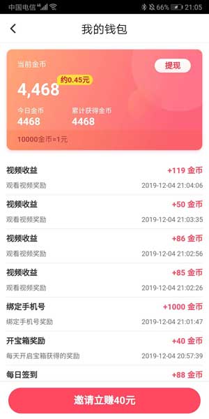下载应用 魔视 分类: 游戏战斗逻辑设计 大小: 22.78 MB 系统: 安卓 发布: 2020-03-14 10:13:56 浏览: 作者: 标签: APP截图 应用介绍 魔视,一款看视频、分享视频也能赚钱的短视频APP。登陆填写邀请码106195就送3毛,可拿更多奖励,可立即提现秒到账。这里不仅有有趣好玩的短视频还有多种趣味玩法,让你在娱乐中还能收获零花钱。赚钱休闲两不误,用心为你推荐有魔力的视频,还有更多精彩活动等你参与! 联系官方 官方QQ群:579849990,微信客服:xiaotangyuan4568 最新应用 趣头条 泡泡头条 麒麟网 抖音极速版 彩蛋视频 贝壳转 蚂蚁看点 闪电盒子